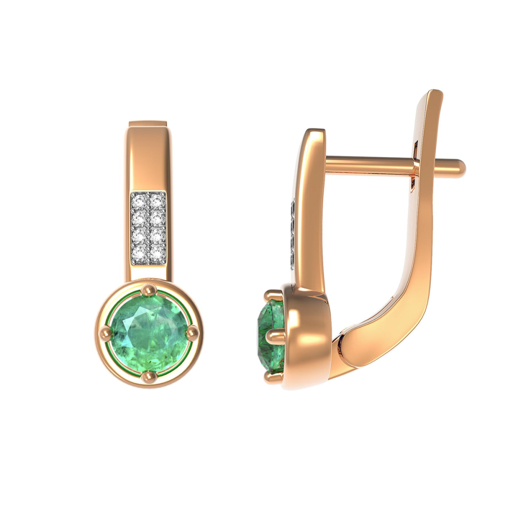 Сережки з діамантом та рубіном з червоного золота (23150)