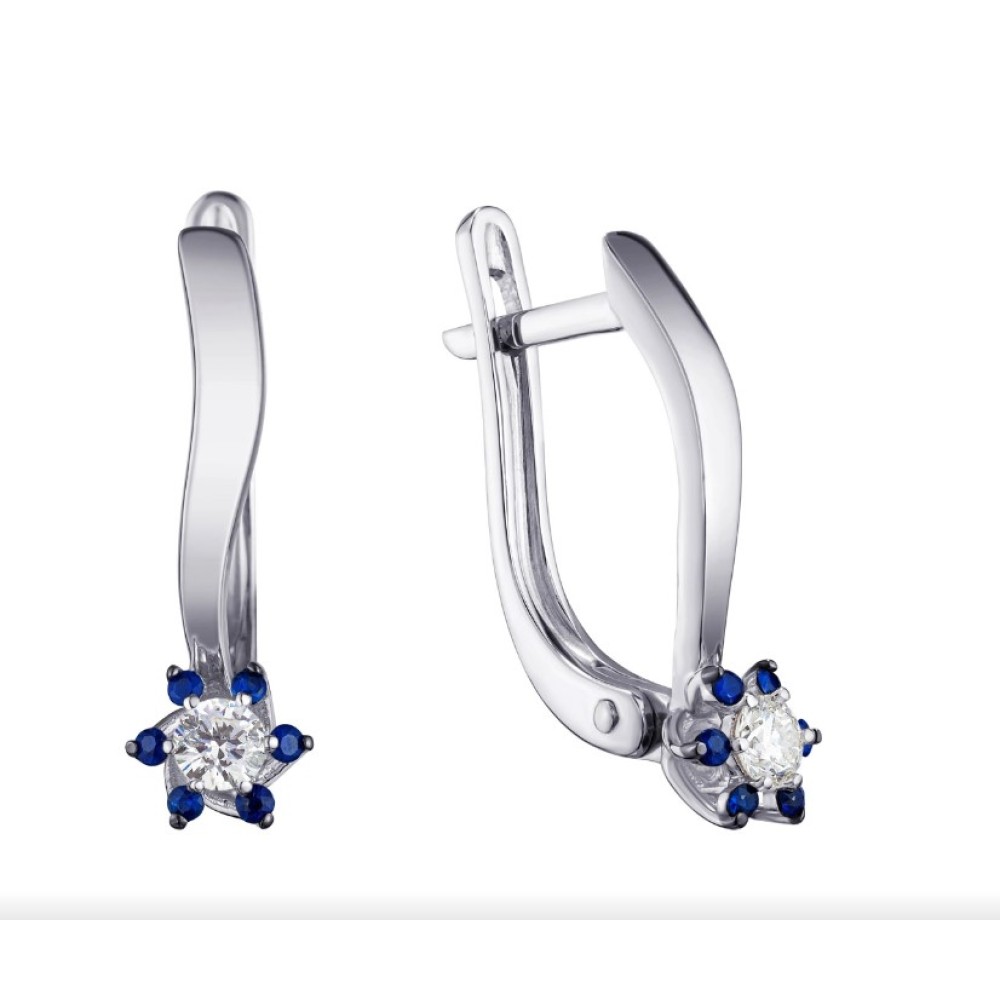 Сережки з діамантами та сапфірами з білого золота (с2559)