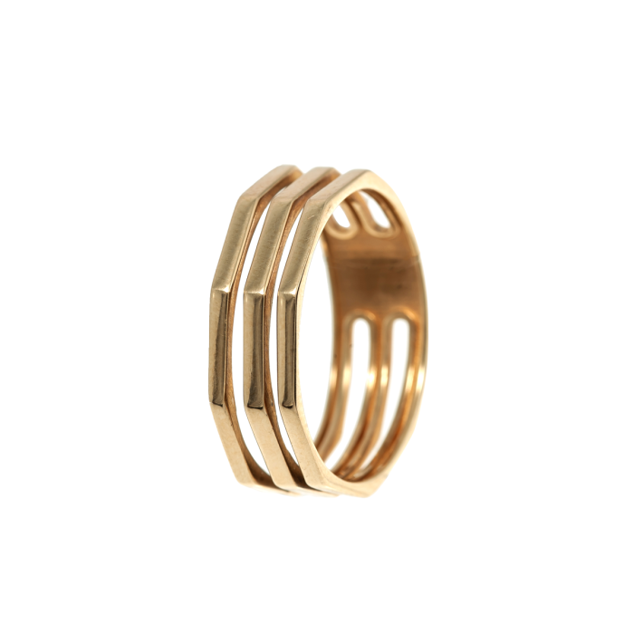 Каблучка без каменів доріжка потрійна з червоного золота (1007672101)