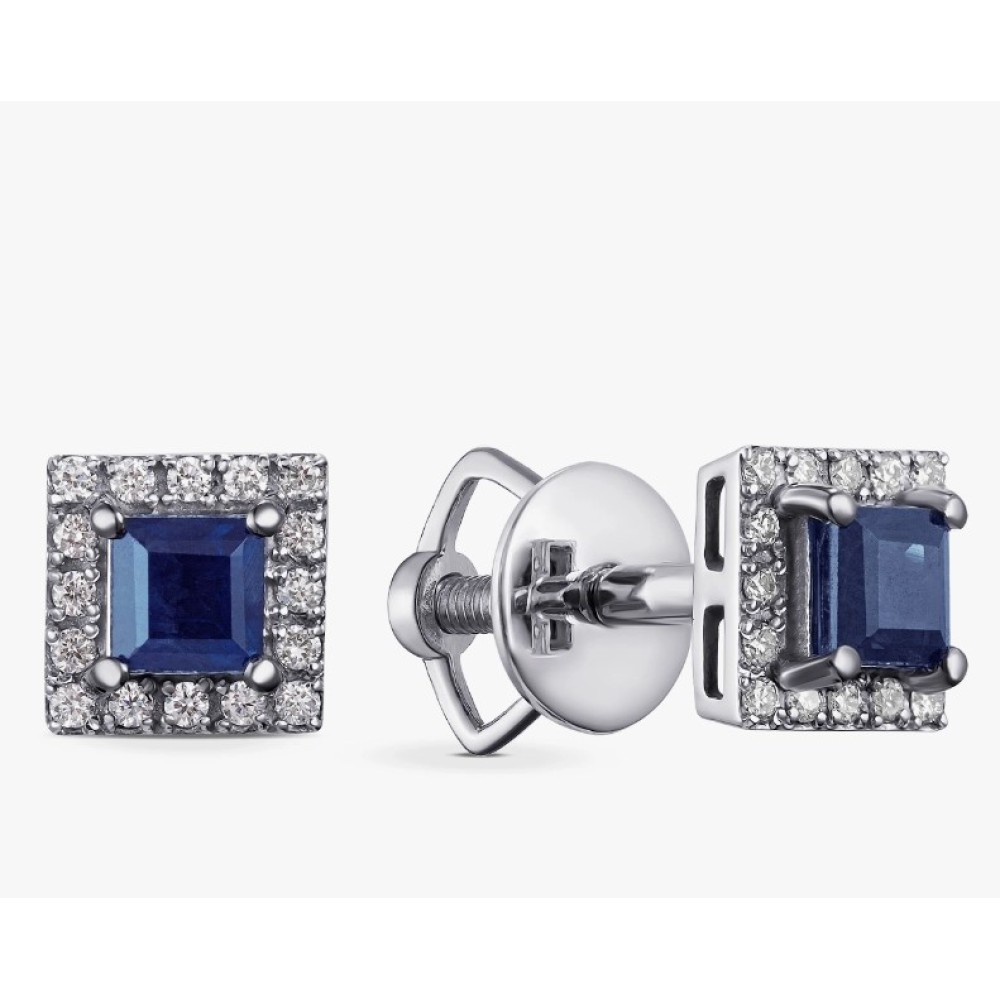 Серьги-пусеты с бриллиантами и сапфирами из белого золота (с2742)